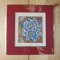 Enluminure avec passe-partout et papier cartonné protégée par une pochette transparente.