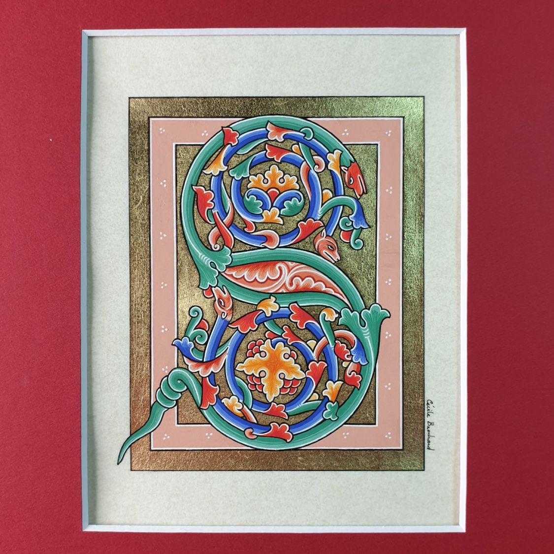 Cette initiale est l'interprétation d'une lettrine d'une bible du XIIe siècle.